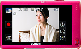 Equipped with a 16.1-megapixel CMOS sensor and a Wi-Fi function. The 3.2-inch wide rear LCD monitor supports touch-screen operation.