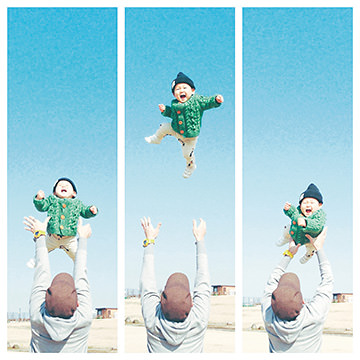We started taking our child's "tossing" photos because he simply enjoys it so much. We tried playing with him in many other ways, but he always gives us the best smile when he is being tossed high up. Now he is so comfortable with the game that he can even enjoy the surrounding scenery while in the air. The reason we have been taking a series of these shots is because our son really loves it, but at the same time we also pay careful attention to make sure there is no danger and that he is not feeling unwell.