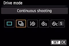 In order to capture the right moment when you are photographing your baby, take as many shots as possible using the [Continuous shooting mode], and choose the best one from them. To do so, simply press the cross key corresponding to [Drive mode], select [Continuous shooting], followed by pressing the [SET] button.