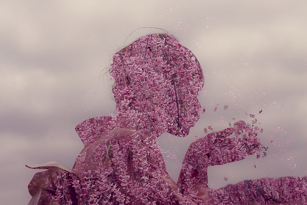 This work made use of multiple exposures, and combines the easily recognizable elements of a lady in Japanese dress and cherry blossoms like an advertising spread. I think the photographer was strongly motivated by his desire to create a unique piece of work.