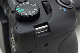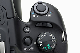 An electronic dial is also installed between the shutter button and the mode dial. The button with the S mark is a Shortcut button.