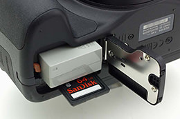 A NB-10L battery is used. The number of shots that can be taken with this battery is about 340. The SD card slot is compatible with UHS-I.