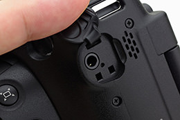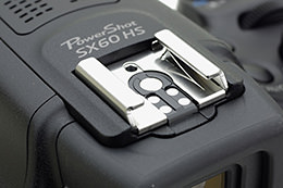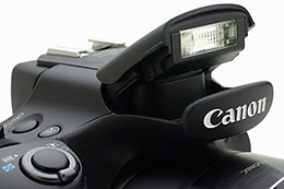 The camera is also fitted with a hot-shoe allowing for Canon Speedlite Flashes for use with EOS cameras to be used.