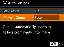 An Auto Zoom function. It automatically adjusts to maintain the size of any faces detected in the frame. This can be useful in taking photos of children etc.