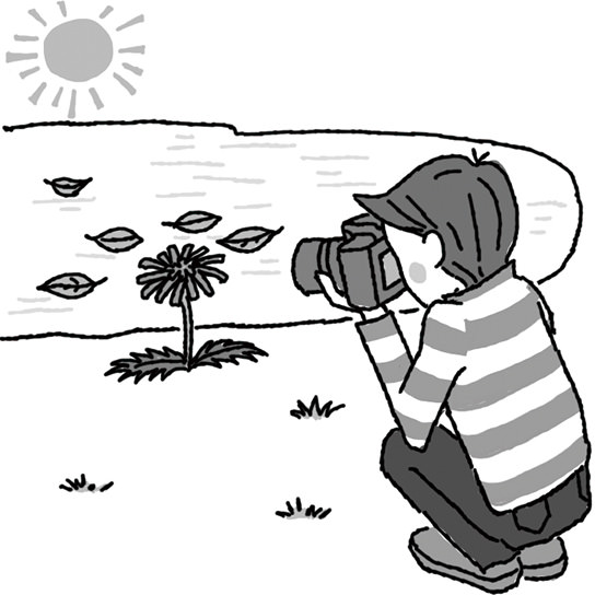 I thought of capturing a close-up shot that would portray the forlorn nature of this lone dandelion flower I found on the banks of a lake. The edges of the dandelion and the water surface sparkled as they reflected the backlight—ideal conditions for creating bokeh circles. Once I was sure that bokeh circles could be created, I decided on my shooting position and angle.