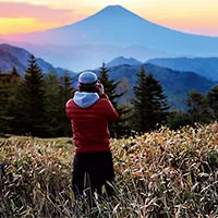 The weather on Mount Fuji is highly unpredictable—you might find clouds getting in the way of your shot. Having some clouds in your shot could also create a beautiful picture, but if they completely obscure the mountain, the only thing you can do is wait until they clear. In fact, to wait is one of basics of photographing Mount Fuji.