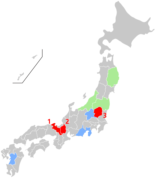 Regions coloured in green have been covered in Part 2 (which also introduces another scenic spot in Kyoto)