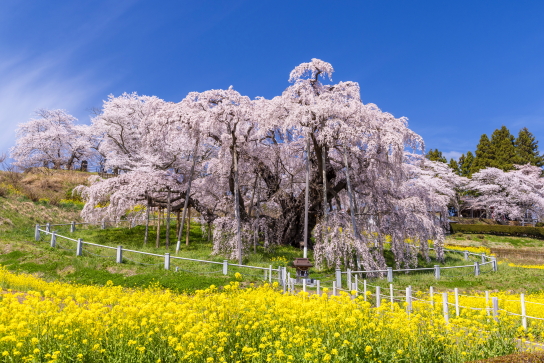This “Waterfall Sakura” is a weeping sakura tree estimated to be over 1000 years old. It is possibly one of Japan’s most famous solo-standing sakura trees, and was designated a natural national treasure in 1922.