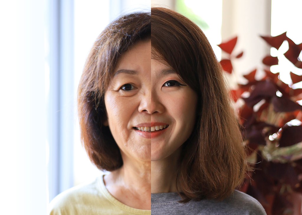 Create an artistic way to shoot a mother-daughter portrait through diptych by placing the portraits side-by-side. This shows a clear distinction of two people yet allowing viewers to find similarities between them. The similarities may not be obvious at first, but as one takes a few more seconds to observe, one may then identify the subtle resemblances of the mother and child through their actions or expressions.