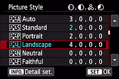Select “Landscape” for the Picture Style. The colour separation will become more distinct and the orange will appear more vivid. Increase the contrast in the Detail Setting to create a more accentuated picture.