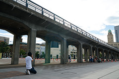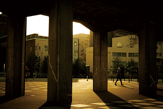 A slightly higher contrast was used while searching for a position in which the shadows extending from the bridge pillars appeared radially in order to accentuate them.