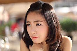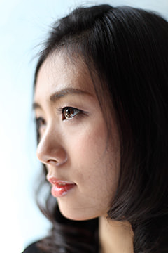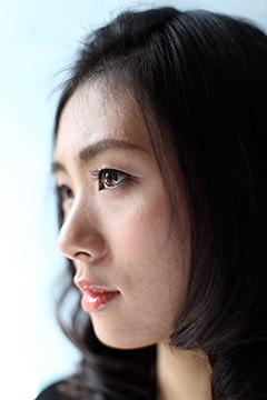 When photographing the upper body of a portrait subject using a prime lens with a small f-number, a slight change in the orientation of the face alters the position of the bokeh and the resulting impression dramatically. In this example, two shots were taken from the same distance. In the front view, the entire face, particularly the eyes and the lips, appears to be in focus. When the face is tilted sideways, half the face is significantly blurred. In portrait photography, you are also recommended to consider how the position of the bokeh effect varies with the shooting angle, in addition to changes in the depth of field, or the range of acceptable focus.