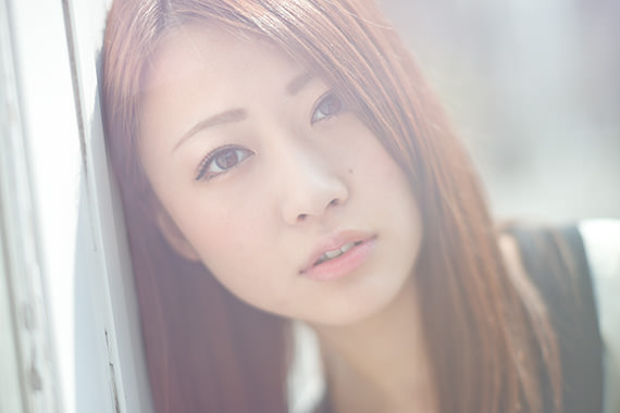 This photo was taken at noon. With light coming from a top angle, I took a shot with the model in a backlit position. In order to feature the springtime atmosphere and also to close in on the model, I used a unique technique by detaching the lens from the body to allow light to enter from the space in between.