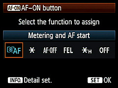 The key to portrait photography is to make sure you “do not miss out on great expressions.” Bearing this in mind, I would use the shutter button solely for the purpose of releasing the shutter. Also, to avoid not being able to locate the AE-ON button when I need to do so quickly, I have also assigned [Metering and AF start] to the AE lock button in addition to the rear AE-ON button.