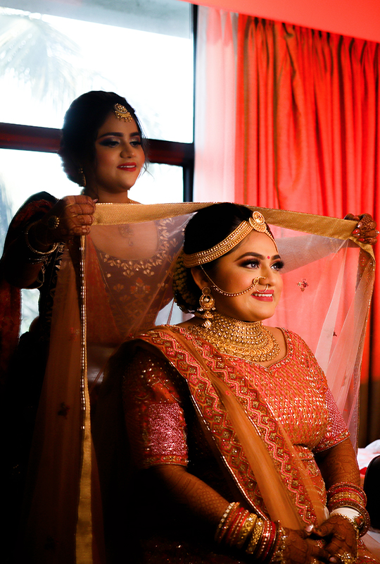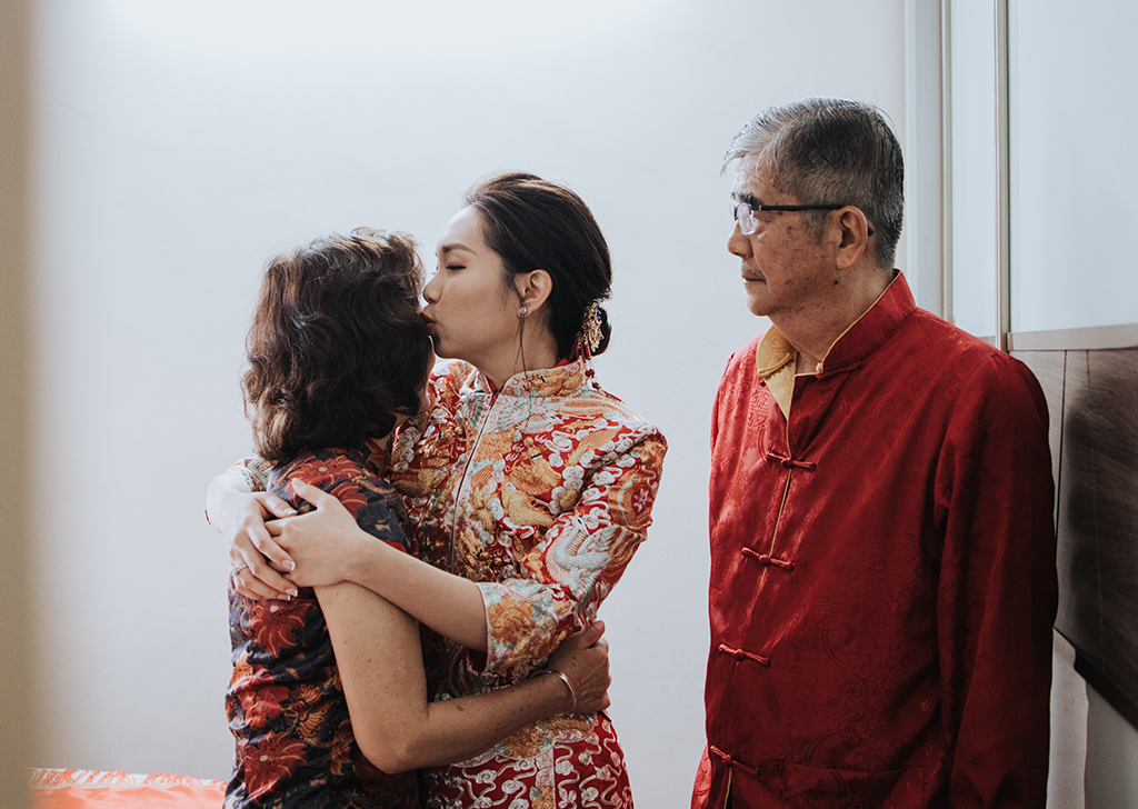 The process of getting ready includes the bride and groom preparing for their big day, containing moments such as putting on makeup and getting dressed up. They can also include certain traditional routines, such as praying to ancestors or eating a certain dish. These ‘getting ready’ moments show what it is like before the big event and offer sneak peeks of what is to come. These moments can sometimes be staged, especially for the final touches, like parents putting the veil on the bride.