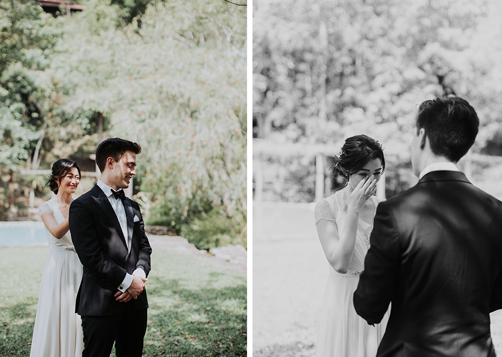 You can try composing your shot from either the bride or groom’s perspective with an over-the-shoulder shot. You must also be alert when such a moment is near and set up ahead of time. As the first reaction will always be the sincerest and most natural (and will often be gone within a few seconds), you cannot afford to miss this window of opportunity as recreating such moments will not have the same impact.