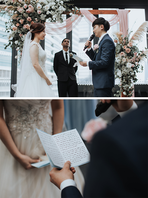 This series of shots are meant to focus on the atmosphere rather than the people involved. It can also spice up the wedding album with its absence of humans, contrasting with the shots that include wedding participants. For shots that involve smaller objects like the wedding ring (look out for special engravings on the rings!), invitation cards, and even the marriage certificate, you can try using a macro lens to close in on the details. For the grand interiors or table setups, you can choose a wide angle lens to capture as many elements in the scene as possible.