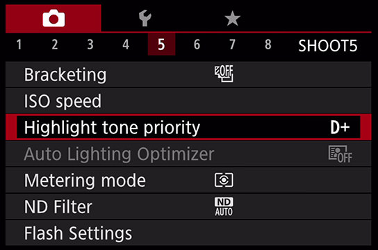 The camera is equipped with the Highlight Tone Priority mode that EOS users will be familiar with. This is an effective function for times when you want to preserve even a little bit of detail in areas with highlights.