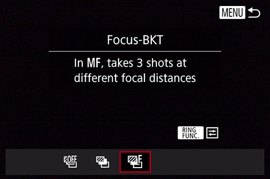 The Bracketing function also includes a Focus Bracketing function that changes the focus position while performing continuous shooting during manual focusing.