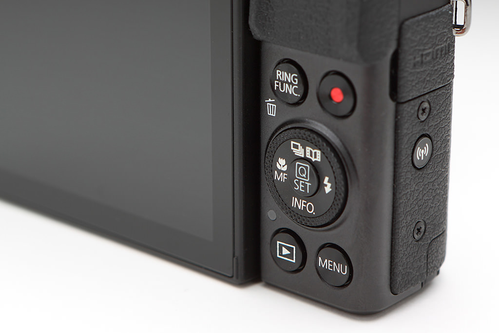 The control ring at the base of the lens is also inherited from the PowerShot G7 X. However, you can now also set the operational feel of the control ring to either step or continuous control. The step-wise movement of the control ring can be switched on/off using a dedicated lever that can also be found at the base of the lens. You can set step control when assigning functions such as exposure settings, ISO speed, step zoom, and also continuous control for silent manual focus. This makes controls more intuitive and can be said to increase the operability of the control ring dramatically.