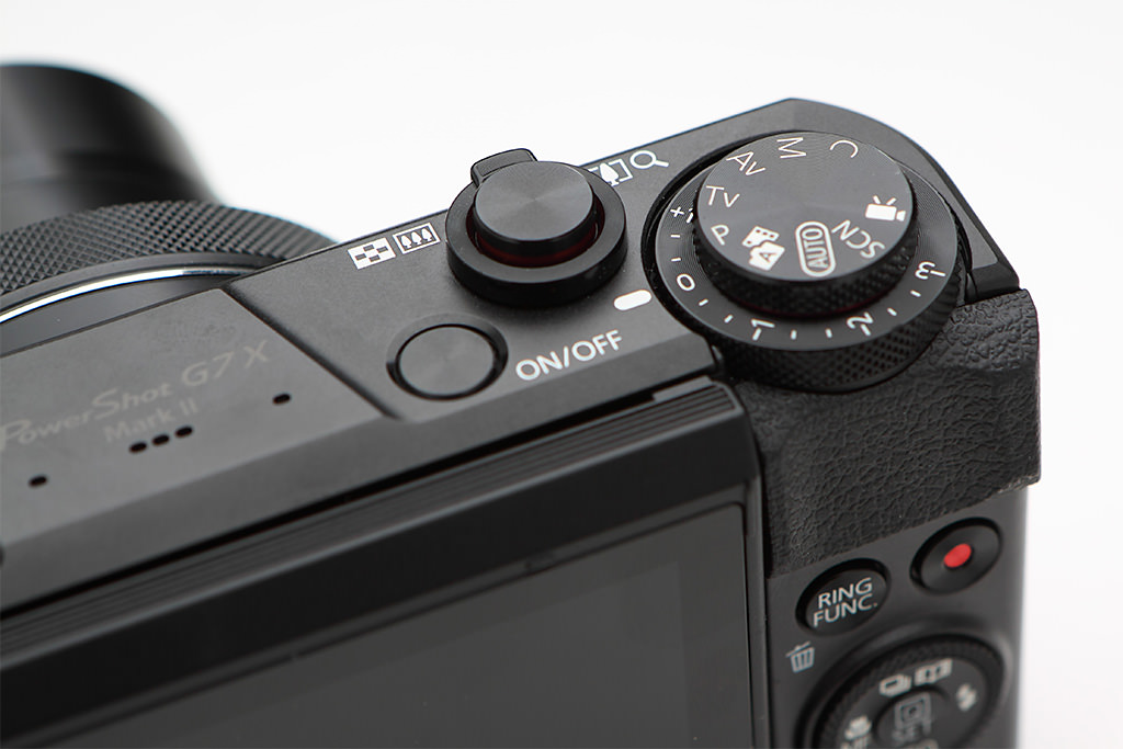Users of the PowerShot G7 X will be familiar with the layout of the controls. The PowerShot G7 X Mark II has inherited the characteristic stacked dial design, which consists of the mode dial stacked on top of the exposure compensation dial. However, the exposure compensation dial has been made larger to allow for easier operation.