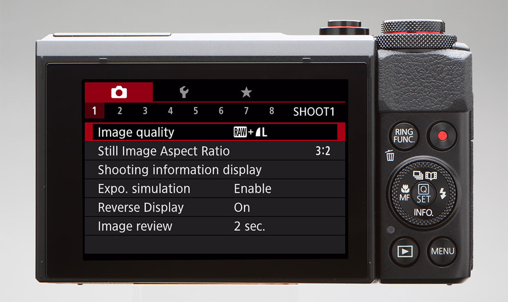 Another new feature of the PowerShot G7 X Mark II is that the menu display is similar to that of EOS-series cameras. EOS camera users will feel right at home with the menu operations. This fine-tuning can be said to deliver an even higher degree of completeness to the camera's operability.