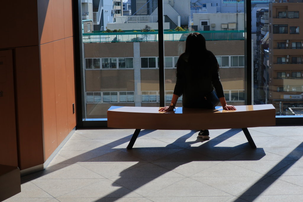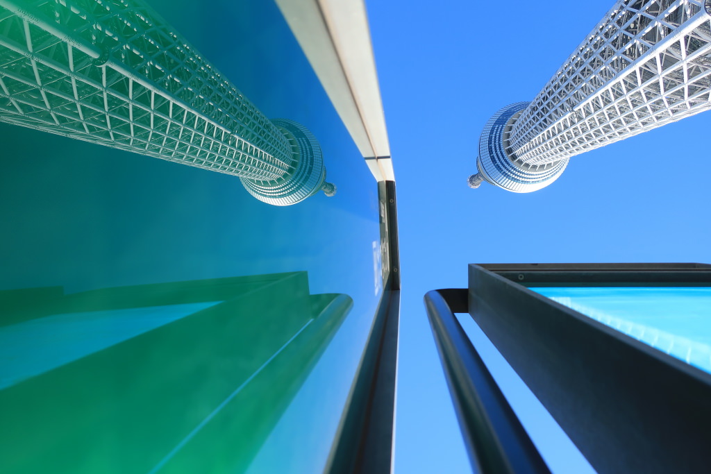I pointed the camera directly upward to capture the reflection of the Tokyo Skytree in a signboard. With a compact camera, it is a breeze to shoot from unconventional angles like this one.