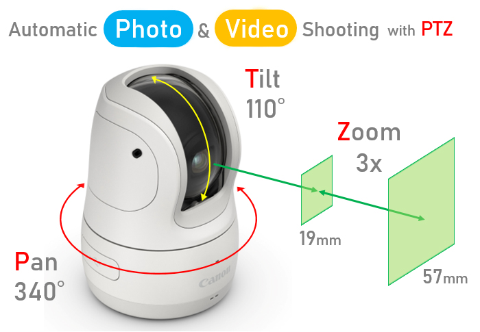 More than simply record images and videos from a fixed position, the camera is equipped with pan, tilt, and zoom (PTZ) capabilities that allow it to adjust its shooting angle and find the best composition, as well as Canon’s excellent subject detection and tracking technology which accurately recognises and tracks people’s faces and can even identify facial expressions to capture the best moments. Support for voice command and customised shooting preferences allow you to take control whenever you want.