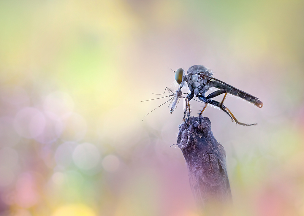 Depending on the lighting condition, you can set your ISO between ISO 200 to ISO 1,600. If you want more depth of field to capture more details on the insect, the f/stop should be around f/5.6 to f/8 and above.