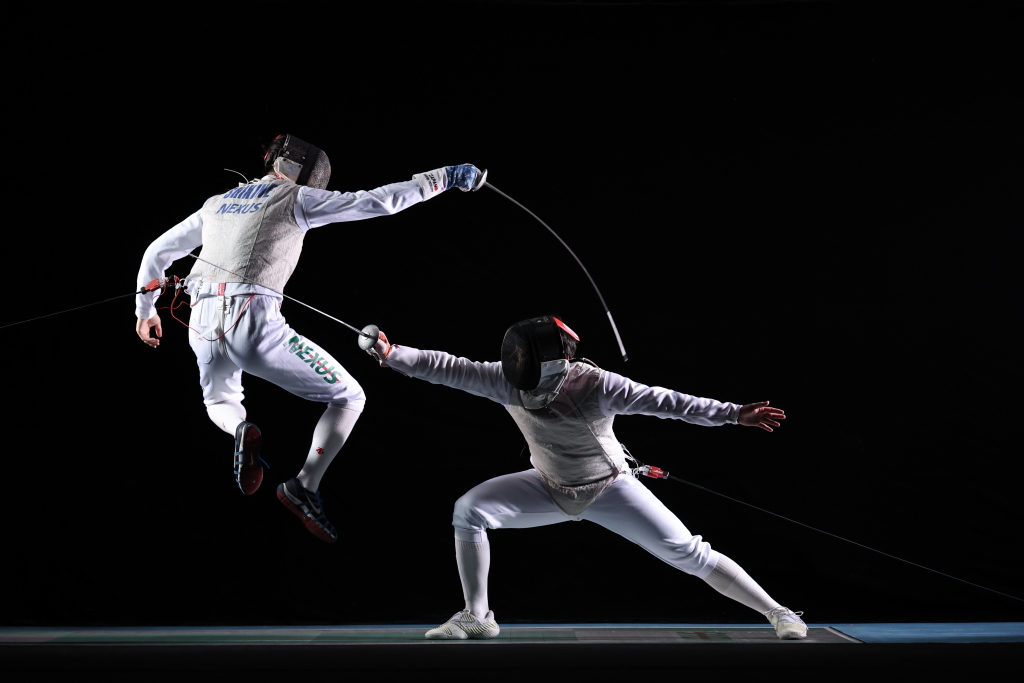With a fast lens, you can use a faster shutter speed to freeze action or avoid camera shake, while keeping the ISO speed low to avoid image noise. For example, this image was shot at 1/1600 seconds to freeze the action of the fencers.