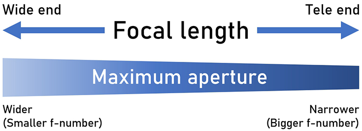 The relationship between maximum aperture and focal length on a variable aperture lens