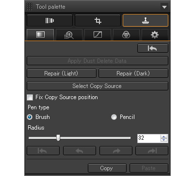 When you notice some imperfections in the photo after shooting, you can use the Stamp tool in DPP (Digital Photo Professional), which comes with the camera. By digitally processing the image, you will be able to get rid of imperfections.