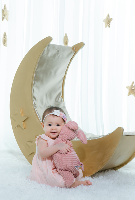 According to Sharon, play is the most efficient way to break the ice with toddlers and get them comfortable with their new surroundings. The photoshoot studios that Sharon utilises are all designed with a specific theme, supported by supplementary decorations and toys to resemble a colourful playground.