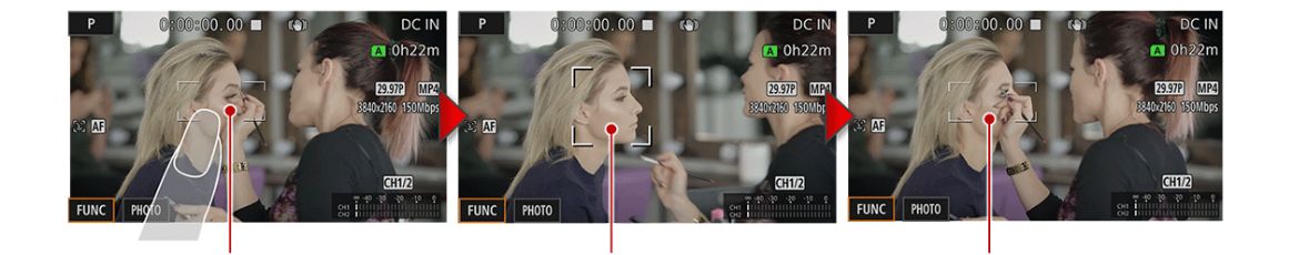 | AF area can be moved intuitively with touch | When a face is detected within the frame,it prioritises keeping focus on the face | When the face is no longer detected, it returns to the original focus position |