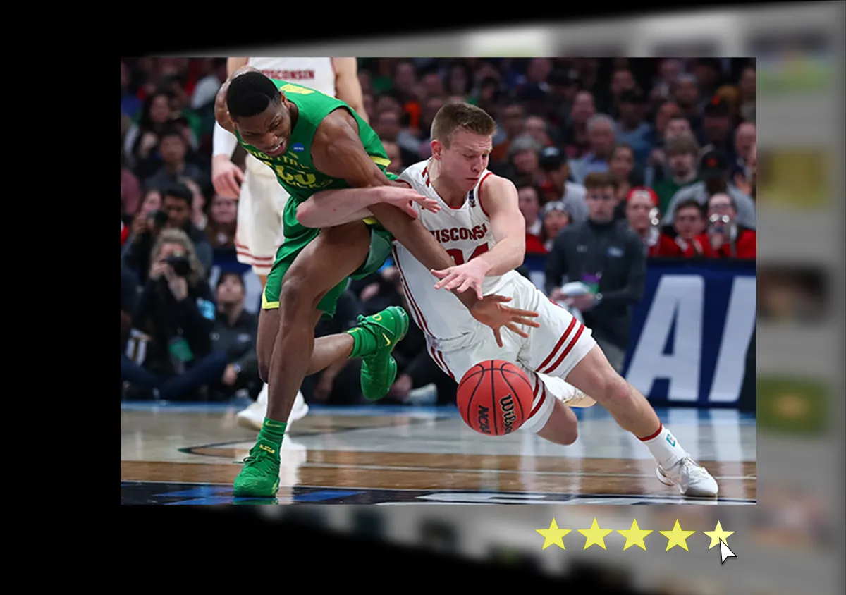 It is different for this frame of basketballers competing for possession of the ball, which expresses the intensity of the game where neither player is willing to give in to the other. The situation captured, the tension and suspense in the interaction, and the emotions on their faces come together to capture a compelling peak action shot.