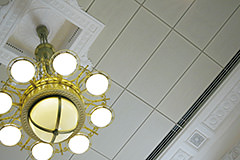 Shot of a chandelier, plant, or coffee cup taken with consideration of the blank spaces around the subject. Distinctive photos with a story can be taken easily.