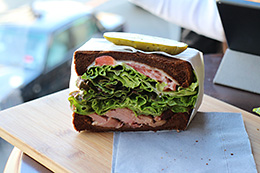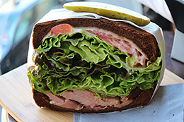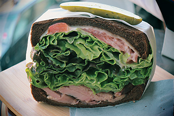 After applying [Fish-eye effect] to deform the sandwich into a round shape, I added [Toy camera effect (Cool)]. The blue hue helps to create a curious atmosphere.