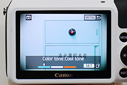 Select the strength and hue of the effect, and tap the [SET] menu to save the image applied with the effect as a new file.