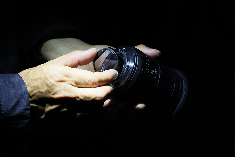 At just around 519g, the RF20mm f/1.4L VCM overturns the conventional idea that professional large aperture ultra-wide-angle lenses are large and heavy. It is around the same compact size as the RF35mm f/1.4L VCM, RF50mm f/1.4L VCM, and RF24mm f/1.4L VCM: perfect for agile, dynamic shooting. This was made possible by the RF mount’s short back focus and large diameter, which facilitates new optical designs such as more compact wide-angle lenses.