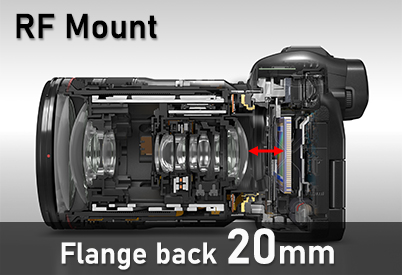 The RF mount has a flange back distance of 20mm, but RF lenses can be designed with a back focus distance shorter than 20mm.