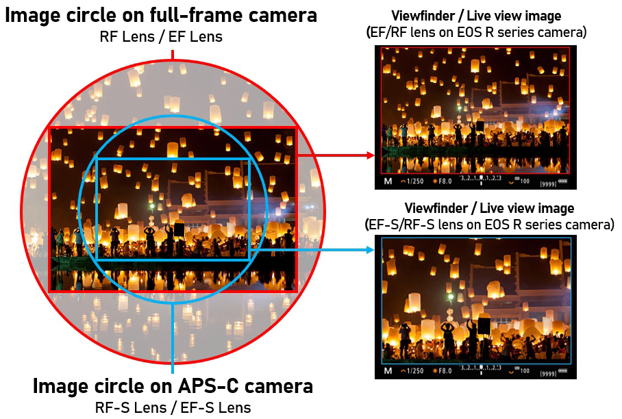 ii) Between APS-C and full-frame EOS cameras: RF lenses