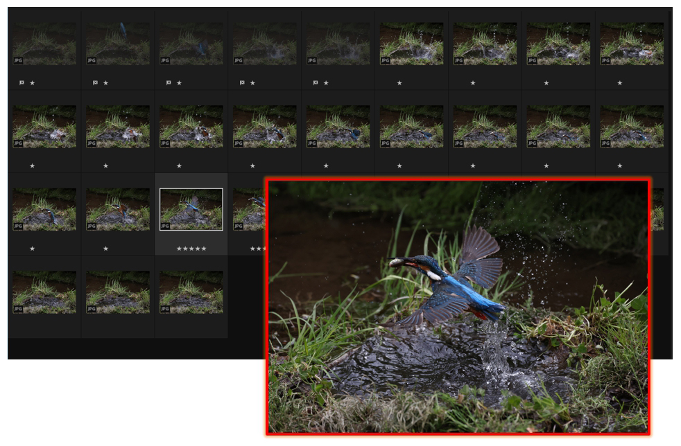 Diving kingfishers are notoriously quick and hard to capture. Using high-speed continuous shooting with an RF lens increases your success rate.
