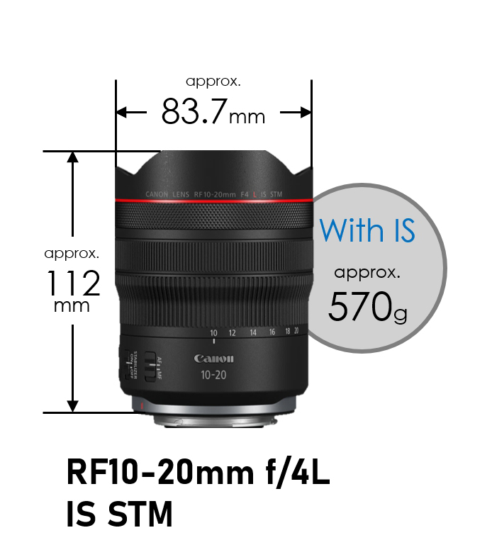 Another example is RF10-20mm f/4L IS STM which is over 50% lighter and significantly smaller than its predecessor, the RF11-24mm f/4L USM. This is even though it adds an image stabiliser unit and achieves a wider field of view!