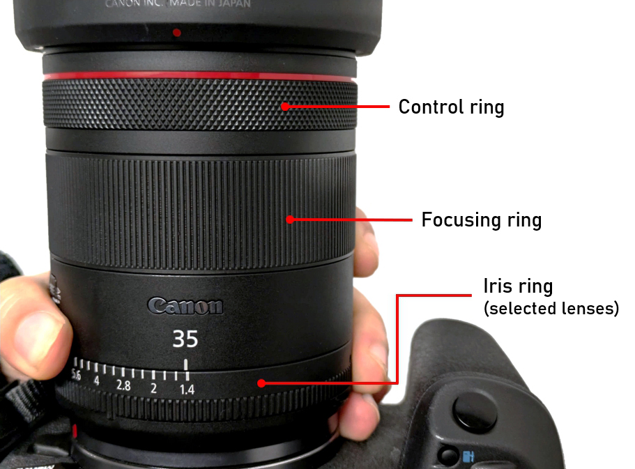 Some lenses such as the RF35mm f/1.4L VCM and RF24-105mm f/2.8L IS USM Z have an additional iris ring that enables smoother aperture changes during video shooting.