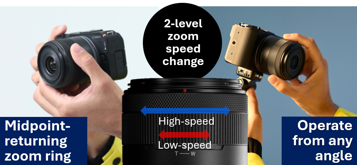 On 27 March 2025, Canon announced the RF-S14-30mm f/4-6.3 IS STM PZ, its first lens to feature a built-in power zoom that enables smooth zooming during video shooting. Designed for APS-C sensor EOS R-series cameras like the EOS R50 V, the wide-angle zoom lens is crafted for effortless content creation and vlogging.