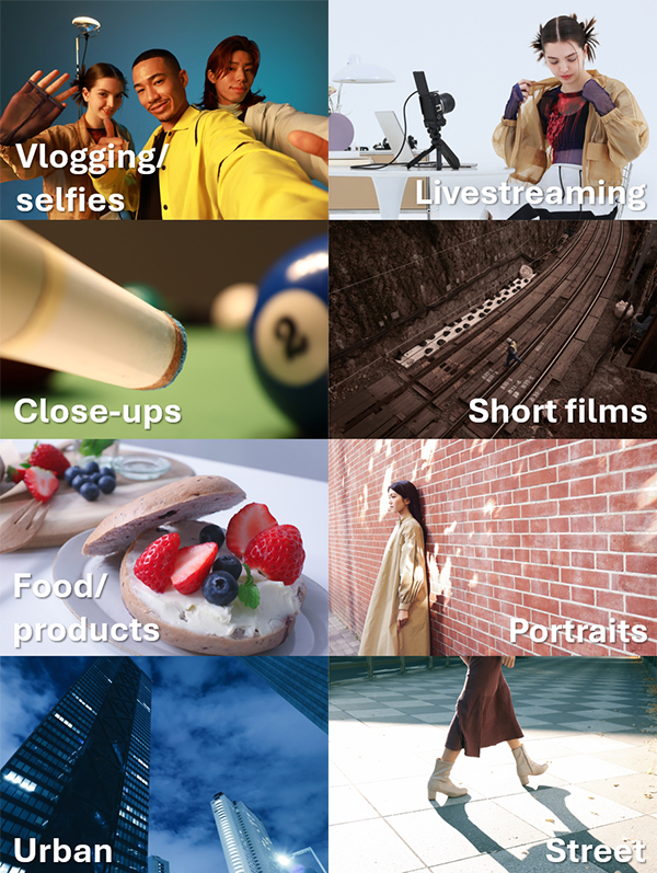 Meanwhile, the longer focal lengths achieve tighter shots with more familiar perspectives—perfect for product close-ups, lifestyle and documentary shots, and other types of footage that call for a more objective point of view.