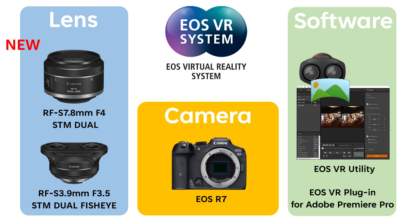 Since its December 2021 debut with the RF5.2mm f/2.8L Dual Fisheye, the EOS VR System has expanded to include lenses that enable 3D VR content to be produced on APS-C format cameras starting from the EOS R7. The RF-S7.8mm f/4 STM Dual is the second such lens after the RF-S3.9mm f/3.5 STM Dual Fisheye, and the third in the EOS VR System.