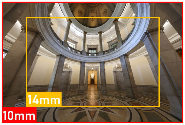 As the image on the left shows, when shooting from the same position, the RF10-20mm f/4L IS STM’s 10mm wide end covers an area around twice that of a 14mm focal length. It covers around 1.4 times the area covered at focal length 12mm. The wider coverage also enables more impactful perspective.