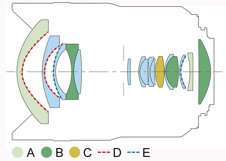 - 3 aspherical lenses, including the large-diameter, high-curvature glass moulded front lens element