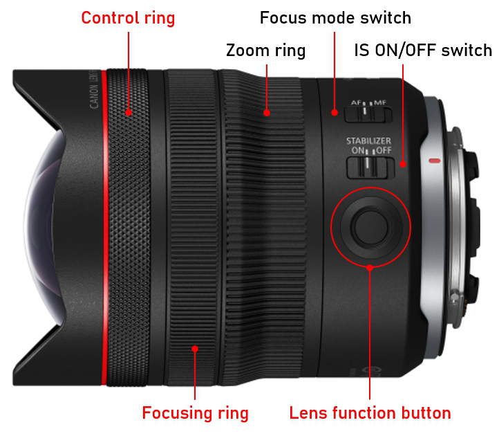 In addition to the usual controls found on RF lenses, the RF10-20mm f/4L IS STM has a lens function button that can be used as a shortcut for assigned functions such as AF and exposure control.